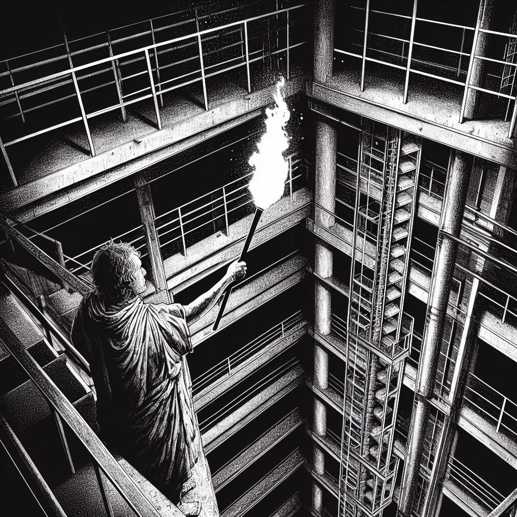 The buden tower was right next to them, empty. Maro walked Pointcare to a platform beneath it and helped him into the basket and with Pointcare’s help worked a series of pulleys to lift him to the top. Pointcare sent the basket down, and Maro was soon at the top together with Pointcare.